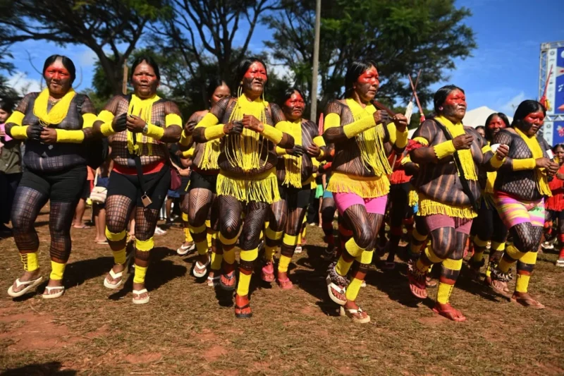 Los indígenas participan hasta el viernes en el Campamento Tierra Libre, que se celebra anualmente desde 2004, con danzas, mercados de artesanía, música y debates.