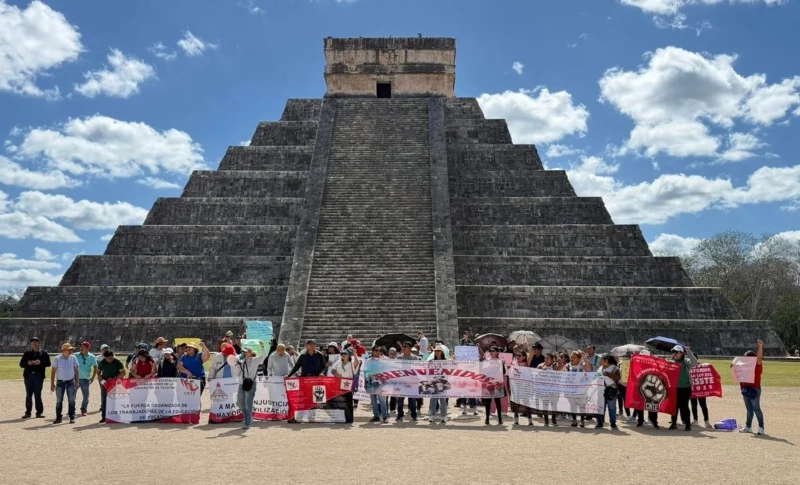 En Yucatán, al menos 70 profesores de la Coordinadora Estatal de Trabajadores de la Educación de Yucatán (Cetey), filial de la CNTE, protestaron en la zona arqueológica de Chichén Itzá, frente a El Castillo Sagrado de Kukulcán para demandar jubilaciones “justas y dignas”.