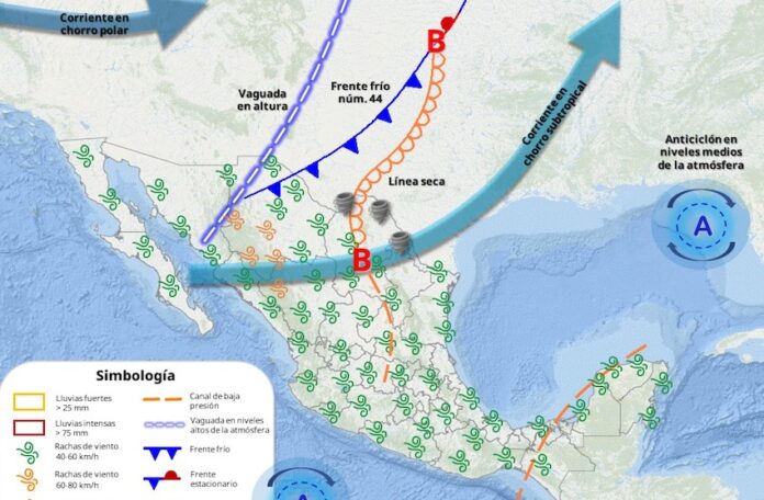 Se prevé el acercamiento de un nuevos sistema frontal hacia el norte de México durante los días 22 y 23 de abril. Dicho sistema podría generar rachas de viento fuertes, lluvias ocasionales y un ligero descenso en las temperaturas máximas a su paso.