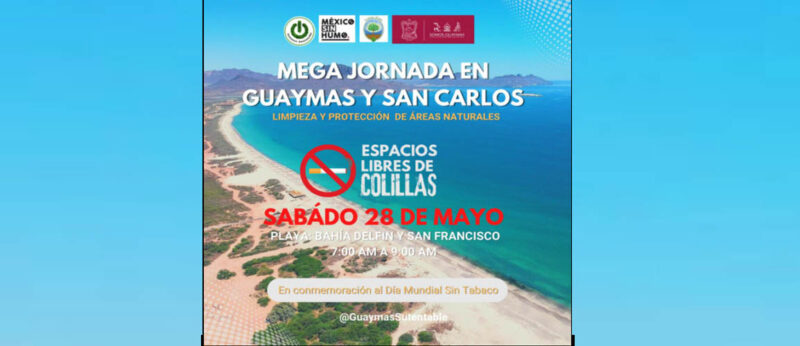 En conmemoración del Día Mundial sin Tabaco, este sábado 28 de mayo se realizará la mega jornada de limpieza de playa de colillas de cigarro y basura en Bahía Delfín y playa San Francisco, a partir de las 7:00 a las 9:00 de la mañana.