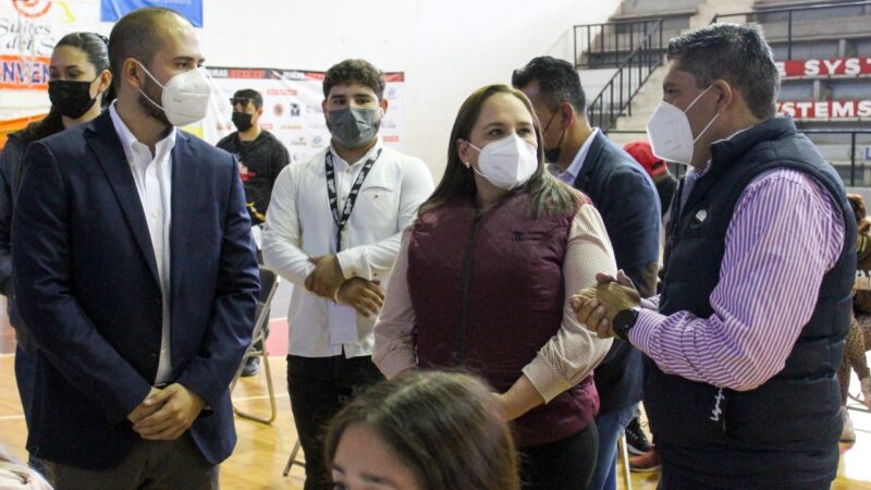 Visita la alcaldesa Karla Córdova González módulo de atención del programa federal “Jóvenes construyendo el Futuro”, instalado en el gimnasio municipal.