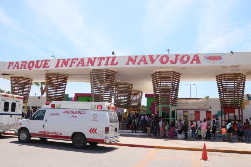 Navojoa, Sonora, 1 de abril 2026.- En medio del entusiasmo de los navojoenses, el alcalde Jorge Alberto Elías Retes y su esposa y presidenta del DIF, Luz Argel Gaxiola de Elías, dieron este miércoles banderazo de reapertura a las zonas acuáticas del Parque Infantil en esta Semana Santa, un espacio de diversión que tiene novedades en instalaciones más funcionales y que hasta el próximo viernes será gratuito para el público general, sábado y domingo solo a niños.