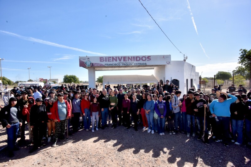 Navojoa, Sonora, 20 de febrero 2026.- Una mega jornada de limpieza a la Unidad Deportiva “Francisco ‘Paquín’ Estrada» encabezó, este viernes, el alcalde Jorge Alberto Elías Retes junto a alrededor de mil estudiantes del CBTIS 207 y Escuela Normal Superior, en un esfuerzo coordinado para la rehabilitación de dicho complejo deportivo ubicado al oriente de la ciudad.