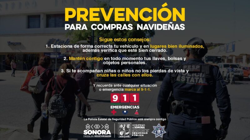 La división de Proximidad Ciudadana de la corporación como parte de su labor preventiva informó que, en esta temporada se incrementa la afluencia en calles de la ciudad y establecimientos comerciales, por lo que se exhorta a las y los sonorenses a redoblar medidas de seguridad.
