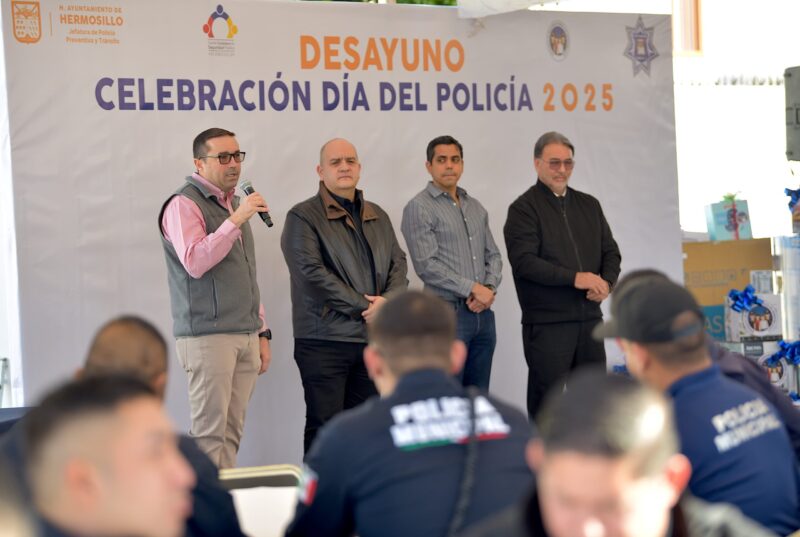 Hermosillo, Sonora; 3 de enero, 2025.- Por su vocación de servicio y trabajo invaluable al frente de la seguridad de la comunidad, elementos de la Jefatura de Policía Preventiva y Tránsito Municipal fueron reconocidos en el Día del Policía 2025.