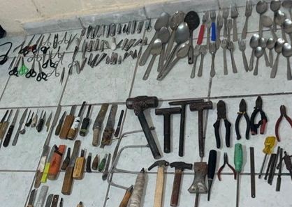Durante las labores de inspección se decomisaron objetos prohibidos, entre ellos televisores, puntas, objetos de metal, cuchillos, herramientas, utensilios de cocina, cables, tijeras, cinturones, juegos de azar y objetos de santería, entre otros.