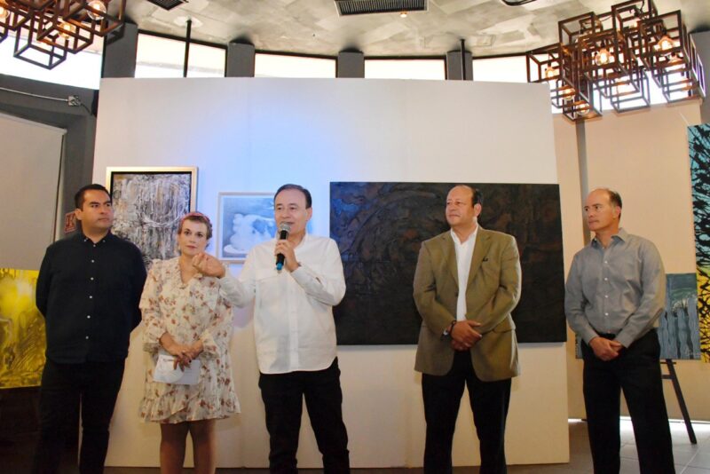 Durante el corte del listón de la exposición celebrada como parte del convenio firmado por el ISC y la Canirac en el restaurante Palominos del Vado del Río, en Hermosillo, el mandatario estatal manifestó su agradecimiento a los empresarios presentes por abrir sus restaurantes para la exposición y venta de obras de artistas sonorenses.