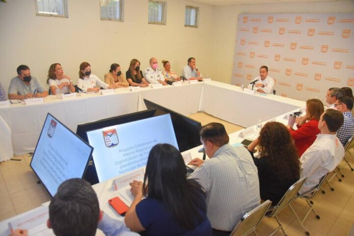 Las y los titulares de las distintas dependencias municipales sostuvieron la reunión de Gabinete Municipal con el Alcalde de Hermosillo en donde tuvieron conocimiento del avance que hay para implementar una Mejora Regulatoria en la Administración Pública Municipal y el Plan Hermosillo CRECE que incluye mejoras para el Centro Hábitat Café Combate.