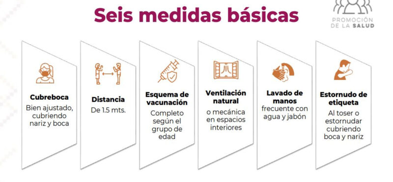 “Es muy importante hacer notar que la Secretaría de Salud tiene y mantiene la rectoría para poder llevar a cabo las recomendaciones en donde todas y todos tenemos que cuidarnos, por el bien propio y del que nos rodea. Por eso, contamos con las seis medidas básicas que se siguen recomendando: como utilizar el cubreboca, la sana distancia, completar esquema de vacunación, ventilación de espacios, lavado de manos frecuente y el estornudo de etiqueta”, recalcó.