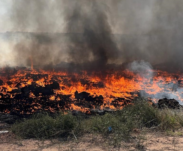 Se evidenció que el cúmulo de materiales abarcaba un diámetro de 15 metros y quedó documentada gráficamente la densidad del humo que emitió en gran parte de la zona, reveló.