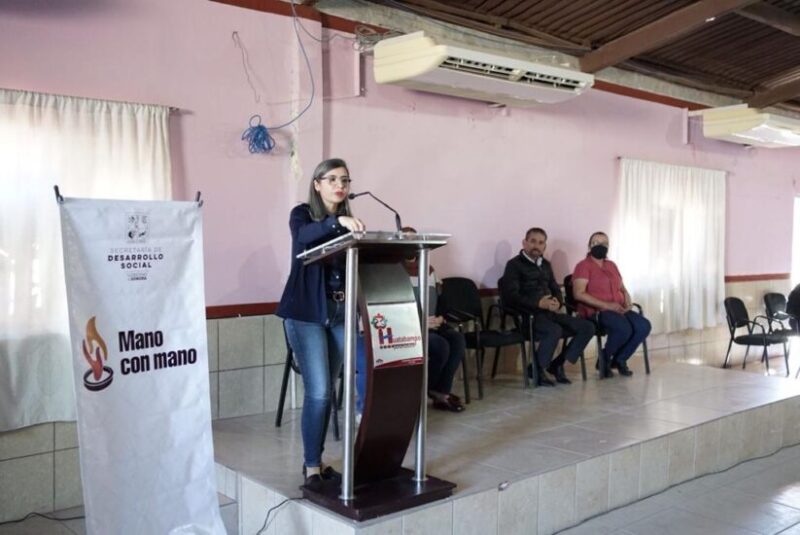 Wendy Briceño Zuloaga, secretaria de Desarrollo Social, realizó una gira de trabajo en los municipios de Huatabampo y Etchojoa para hacer entrega de apoyos de los programas “Mano con Mano” y “Cuidar a Quienes Cuidan”.
