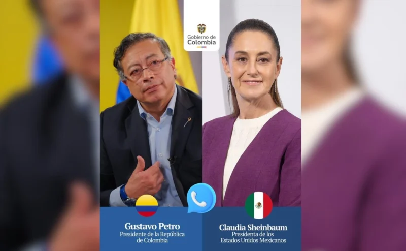“Presidente @PetroGustavo conversó este miércoles con la presidenta de México, @Claudiashein. Durante el diálogo, ambos mandatarios abordaron temas como el conflicto en Medio Oriente, la unión latinoamericana, entre otros. México confirma su participación en la Cumbre CELAC-África, que se realizará este 21 de marzo. El país estará representado por el Canciller Juan Ramón de la Fuente” informa el mensaje en redes sociales de la Presidencia de Colombia.