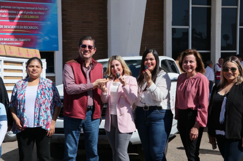 Navojoa, Sonora, 27 de febrero 2026.- Para reforzar la operatividad en sus programas de asistencia social, el Sistema DIF recibió este viernes tres pick ups nuevas entregadas oficialmente por el alcalde Jorge Alberto Elías Retes a la presidenta de la institución, Luz Argel Gaxiola de Elías, agradeciendo a los navojoenses por hacer posible estos avances con el pago de impuestos.