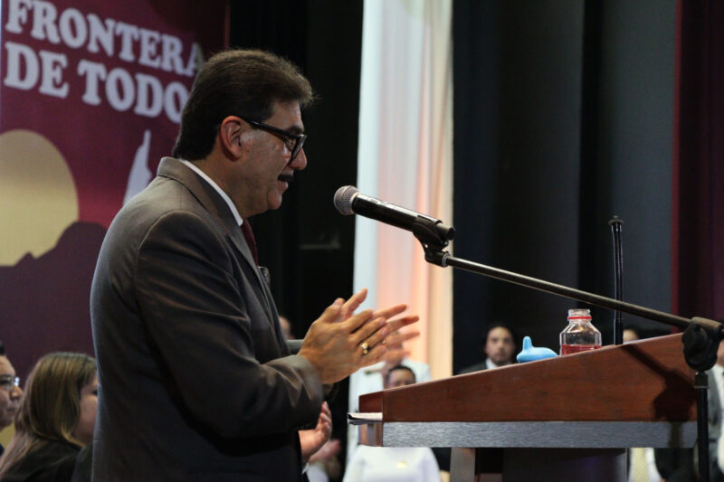 Y señaló: “No estoy aquí como un producto del azar o de la suerte; desde que llegué a esta bendita ciudad, tuve claro que era una tierra de encuentro y una frontera de oportunidades. ¿Cómo no agradecer?, si aquí me forjé; aquí me formé profesionalmente en mi Alma Mater el Instituto Tecnológico de Nogales”.